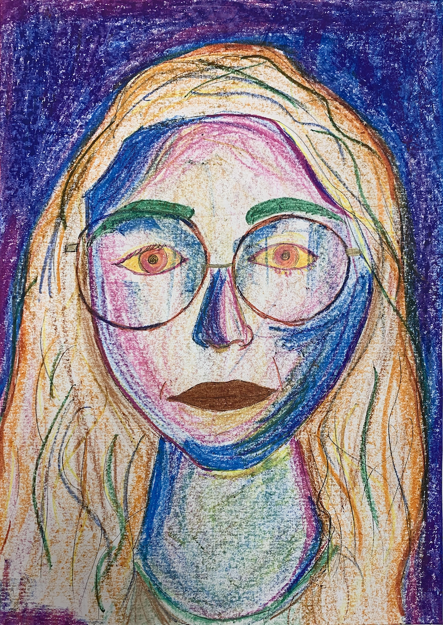 Las sesiones sobre el autorretrato continuaron y trabajamos también con él utilizando el color. Primeramente, lo hicimos con la técnica de pintura seca, donde usamos principalmente ceras, Antes de iniciar este proceso, vimos distintos ejemplos de cómo trabajar con la pintura siguiendo distintos estilos, donde se incluye el realismo, el cubismo, el expresionismo, etc. Aquí voy a plasmar distintos tipos de autorretratos antes de mostrar cómo pinté el mío, que trató de seguir el estilo expresionista.